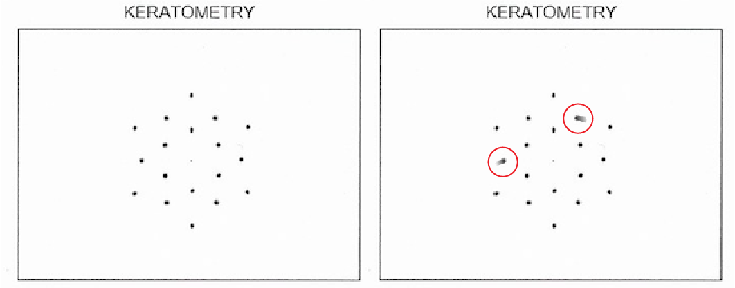 Smearing of just 1 of the 19 reflectance keratometry reflected spots can result in innacurate measurements.